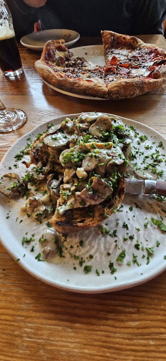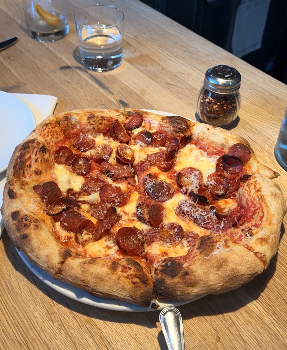 We came to this restaurant perhaps expecting too much. Service was great considering the busy lunch hour, wine was good, water tasted very clean and fresh, and the sourdough was excellent :) Unfortunately, the toppings on the pizza were disappointing. The Margherita pizza was oversalted, and the mushroom pizza was sopping wet. I don't think I'll go back, at least not for the pizza.